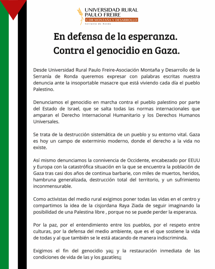 Nos sumamos a la defensa de la esperanza contra el genocidio de Gaza.