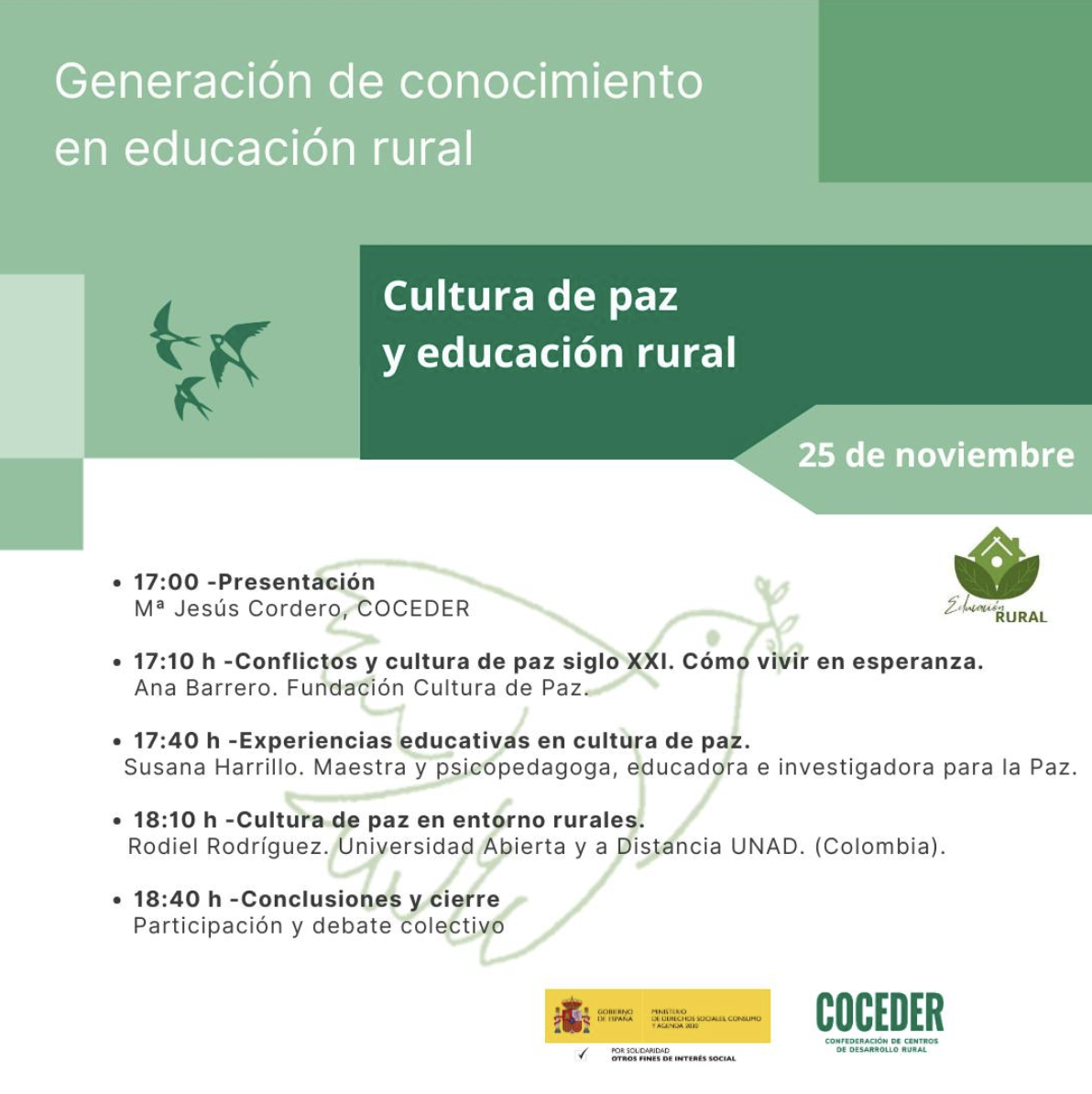💚Este 25 de noviembre te invitamos a un webinar gratuito donde reflexionaremos sobre cómo construir una cultura de paz en el ámbito rural. 🕊️